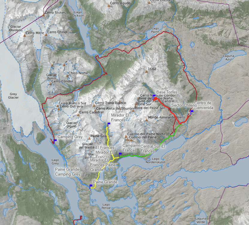 La Ruta W es una de las rutas de senderismo más populares y conocidas del Parque Nacional Torres del Paine. Se llama así debido a la forma que traza en el mapa, asemejándose a la letra «W». Esta ruta cubre aproximadamente 80 kilómetros y generalmente se recorre en un periodo de 4 a 5 días. Los senderistas son recompensados con vistas espectaculares de montañas, glaciares, lagos y valles.