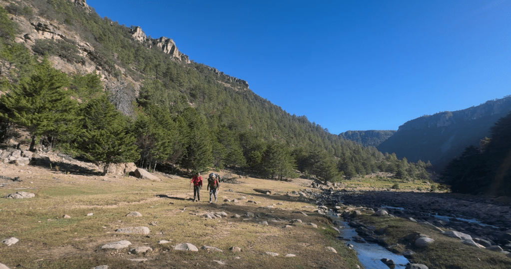 Los compañeros rarámuris caminaban con naturalidad, como si el terreno les hablara en voz baja. Su andar ligero marcaba el ritmo, y nosotros aprendíamos a seguirlo, encontrando en su paso una lección de equilibrio y resistencia.